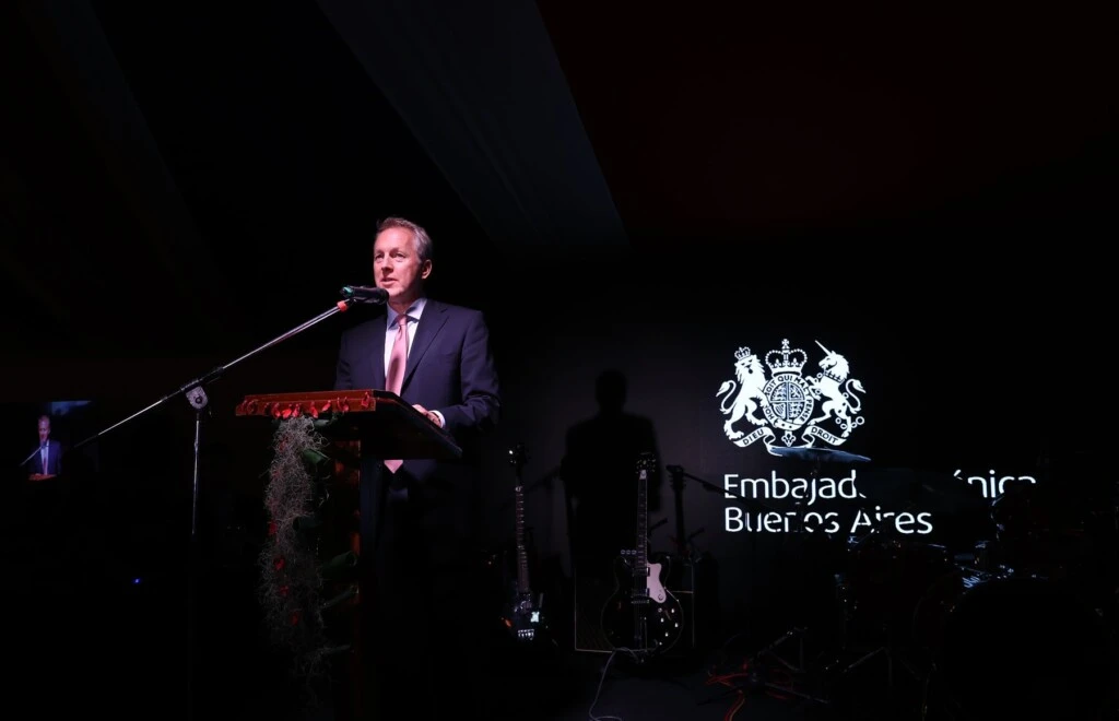 El Embajador David Cairns durante su discurso.Se trató del primer gran evento encabezado por el Embajador David Cairns, quien arribó al país en septiembre últimoLuego del discurso del Embajador, la banda argentina Oeisis hizo un tributo a Oasis, el famoso grupo de Manchester.El festejo marcó el cierre de la campaña del Bicentenario, ya que durante todo este año la Embajada celebró dos siglos de relaciones diplomáticas entre el Reino Unido y la Argentina.Mariano Cúneo Libarona, ministro de Justicia, y Juan Ignacio Petra Cremaschi junto al embajador David Cairns y su mujer, Sharon, los anfitriones.El ministro de Desregulación y Transformación del Estado, Federico Sturzenegger, y María Josefina RouilletDurante le recepción, la cantante María Álvarez de Toledo fue la encargada de entonar los himnos de ambos países.Los anfitriones reciben al canciller, Pablo Quirno, y su mujer JosefinaDurante su discurso, el Embajador Cairns rememoró algunos hitos de estos 200 años, como la visita que Carlos hizo a la Argentina en 1999 (cuando todavía era Príncipe de Gales).La recepción celebró los 200 años de amistad entre ambas naciones.El Embajador exhibió un video que resume los 200 años de historia a través de grandes abrazos y amistades forjadas entre británicos y argentinos: desde Messi con Beckham y Fangio con Moss.Los invitados pudieron recorrer las cinco “Estaciones del Bicentenario”, en las que mediante una instalación gráfica y audiovisual se abordaba la rica historia de la relación bilateral desde diversos ángulos.El DJ Maxi Martina, que conduce The Selector, el programa de radio semanal del British Council, desplegó una selección de música británica de todos los tiempos.La periodista Diana Zurco junto al embajador David Cairns.El embajador inglés junto a Marwan Gill, presidente de la Comunidad Musulmana Ahmadía en Argentina y Chile.Bhavna Sharma, ministro consejero de la embajada, y la agregada de Defensa, Sally Louise Cawdery.Inés Weinberg de Roca, jueza del Tribunal Superior de Justicia de la Ciudad de Buenos Aires.Yurii Klymenko, embajador de Ucrania, y su mujer Zola.El embajador de Rumania, Dan Petre.Imagen del evento desplegado en la embajada británica.