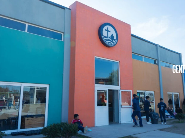 Las calles angostas de la zona mezclan tierra, asfalto y casas bajas de ladrillo visto. Una calle larga es la antesala: un portón verde se abre cada mañana y deja pasar a 750 chicos que llegan con uniforme prolijo, mochilas gastadas y un saludo que en general incluye una gran sonrisa, “Buen día, ¿cómo estás?”.