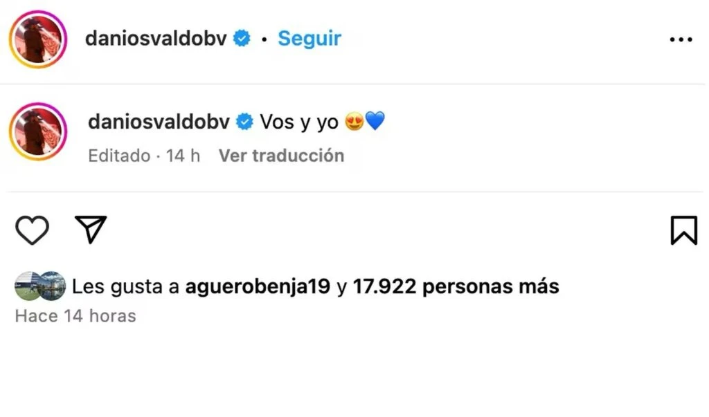 “Vos y yo”, había escrito el ex de Gianinna en Instagram, con una foto junto a la periodista. Ante esto, Benjamín le likeó el posteo con un corazoncito que dejó al descubierto que su cariño por el exnovio de su mamá sigue intacto.