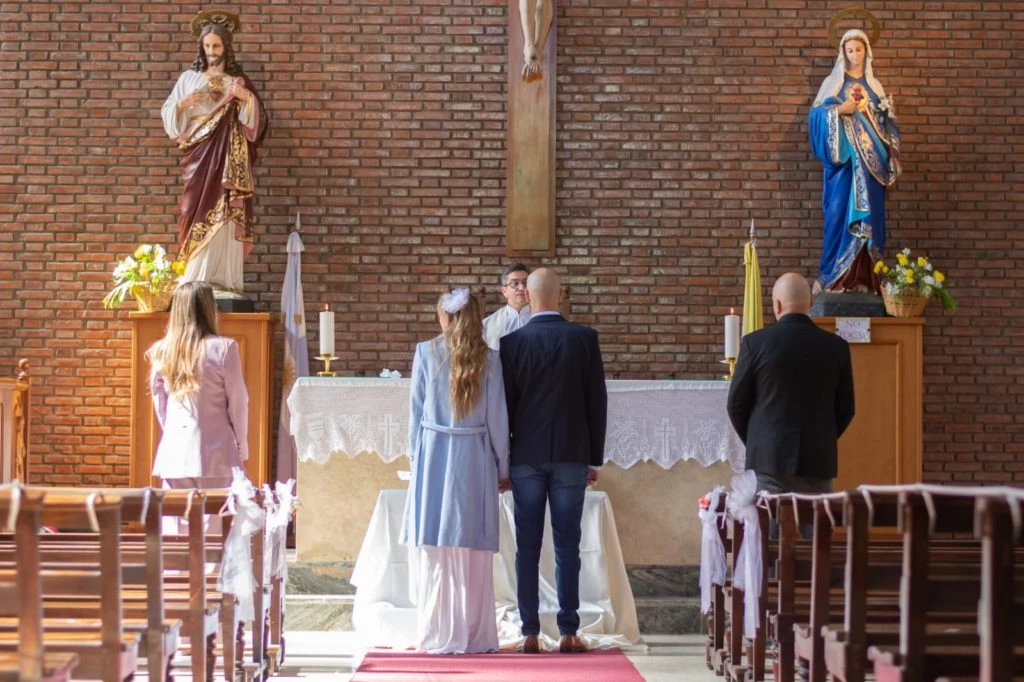 Abel Pintos y Mora Calabrese sellaron su amor por la vía civil en Resistencia, Chaco, y esta vez lo hicieron en la Iglesia Nuestra Señora del Carmen, ubicada en Cañuelas.