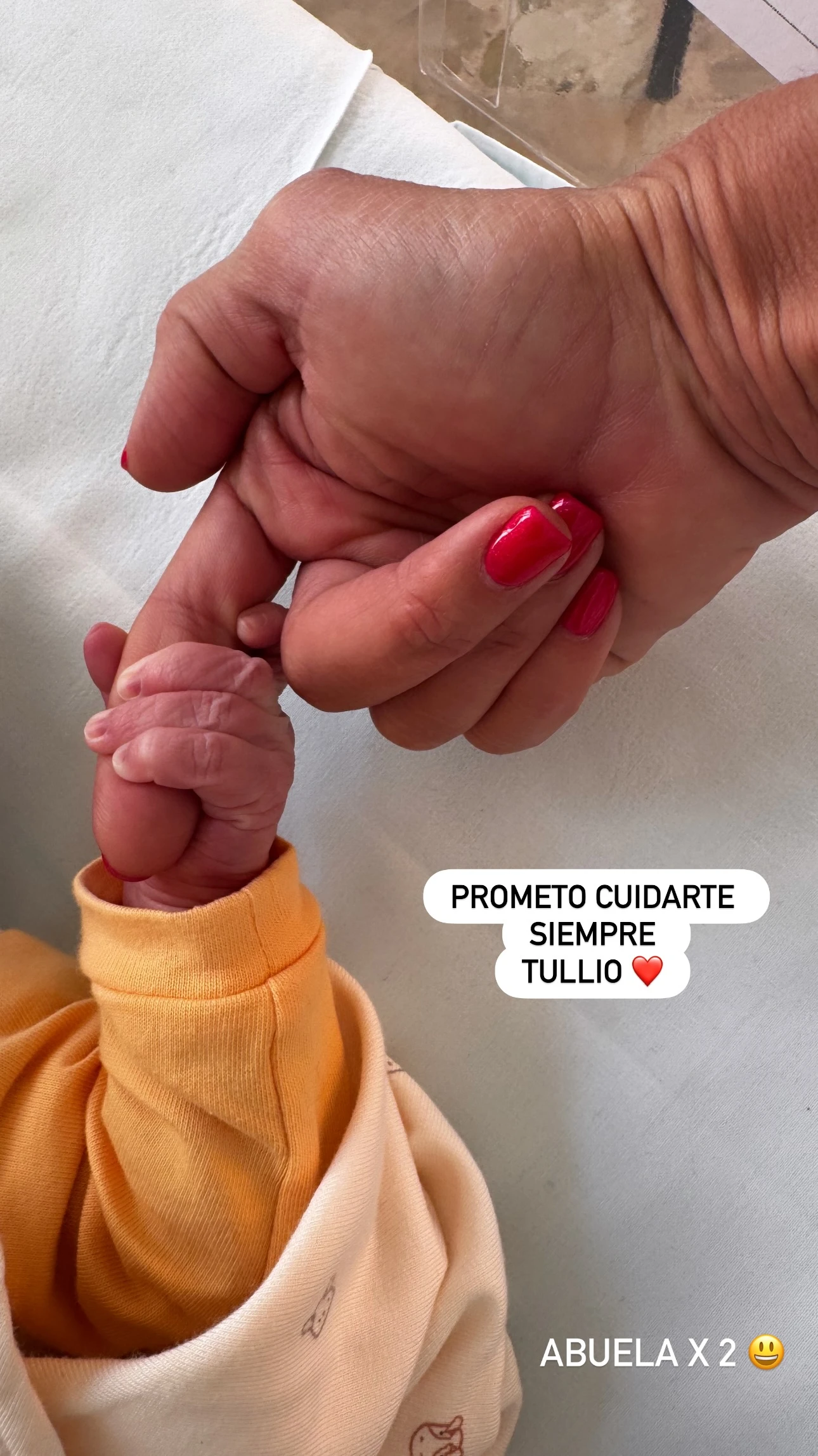 A las imágenes, Baldini les sumó un agradecimiento que terminó de pintar el clima familiar: “Gracias, Giulia, por traer al mundo a mi nieto. Tullio tiene unos padres maravillosos y una mamá fuerte, valiente y llena de amor. Bienvenido a esta familia que ya te ama profundamente”. Un texto breve y preciso, que dice todo.