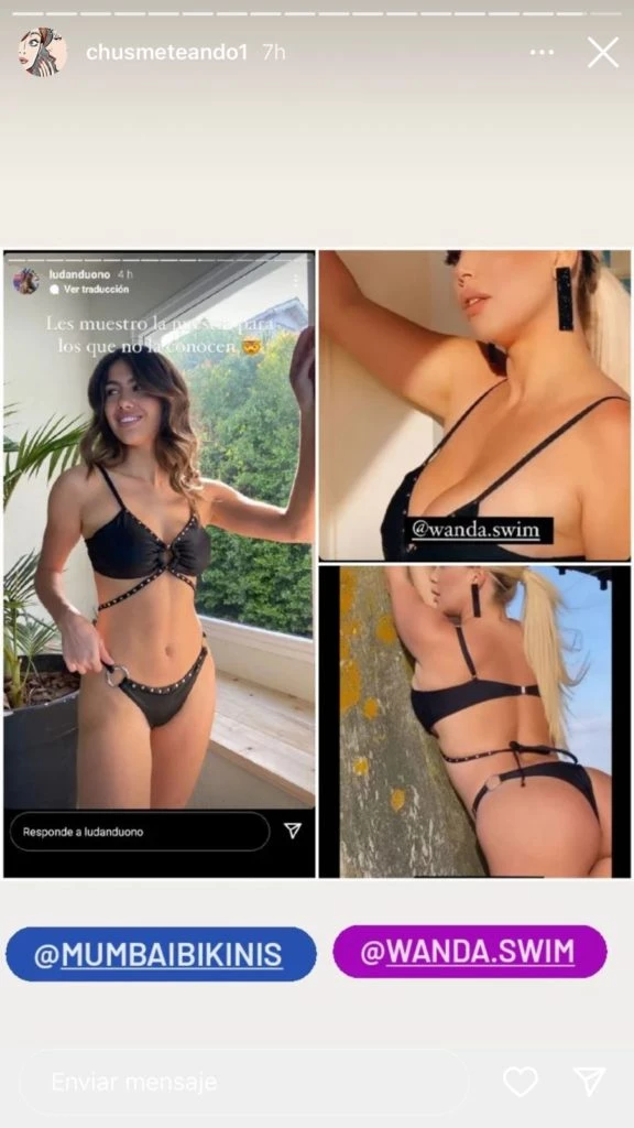 La cuenta especializada en farándula 'chusmeteando1' fue la primera en compartir el descargo de la diseñadora y las fotos donde se puede observar que las bikinis son exactamente iguales. "Estoy en shock, Wanda nos copió una bikini. Pero así tal cual, copia exacta", expresó Luciana Danduono dueña de Mumbai Bikinis.