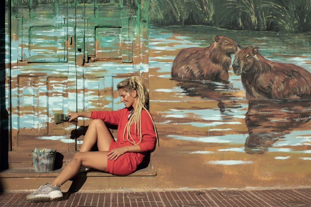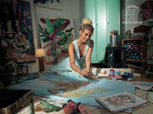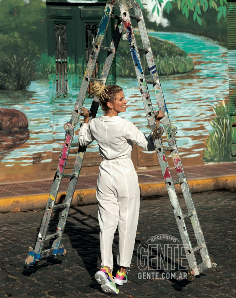 "Fue patear un tablero, hacer una transformación. De pronto, tenía una profesión que disfrutaba y me hacía viajar, y no necesitaba correr para pagar nada. Mi vida siguió por ese sendero hasta que conocí un chico santafesino, me puse de novia, y me mudé a Rosario. Un día empecé a pintar y a redescubrirme sin que ningún profesor me calificara. Entonces me picó el bichito de dejar huella. Un tiempo después –hace casi seis años–, viajé a Panamá y pinté mi primer mural junto a tres niños de la calle. Ahí ya no hubo marcha atrás. Volví a Argentina y me anoté en un curso con Martín Ron. Un flash, porque yo veía sus murales de chica en zona oeste y pensaba ‘Uy, quiero pintar así’. Y empecé a animarme cada vez más. Pero seguía siendo un hobby. El gran quiebre vino cuando, después de quince años de laburo, los directores de publicidad se cansaron de mi cara y prácticamente me dijeron ‘te vimos demasiado’ y debí replantearme todo. En un acto de valentía decidí alquilar un espacio compartido con otras chicas para hacer un co-working de arte… ¡Y por suerte salió bien! Es el día de hoy que me llaman de grandes cadenas de televisión y no sé si me buscan por un personaje o por mis murales. De lo que sí estoy segura, es que es por mi arte”.