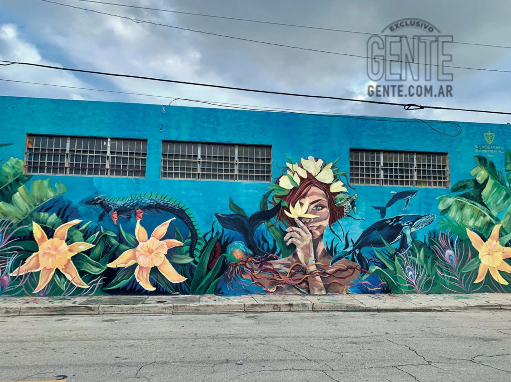 Cuestión que, en enero de 2020, terminé pintando el primer mural ecológico de Wynwood. Se trata de una mujer con manchas en la piel de vitíligo, para fomentar esto de que lo imperfecto en realidad es perfecto, y que lo que algunas mujeres tapan, los hace únicas. Y la acompañé con un fondo de mar, porque tiene que ver con la conciencia planetaria”.