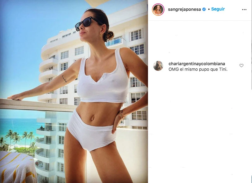 Pero esto no terminó ahí, ya que otra seguidora la comparó con Tini, quien en más de un oportunidad fue cuestionada por la forma de su ombligo. "OMG el mismo pupo que Tini", fue el comentario que recibió la actriz, aunque no se hizo eco.