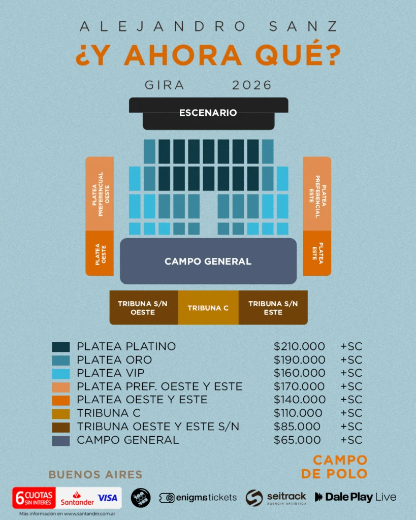 El doble show será doblemente especial. No solo marcará el esperado reencuentro de Sanz con el público argentino, con el que mantiene una relación histórica, sino que además lo convertirá en el primer artista en inaugurar el nuevo formato del Campo Argentino de Polo, un espacio emblemático de la ciudad que se renueva para ofrecer una experiencia superadora de conciertos a cielo abierto.