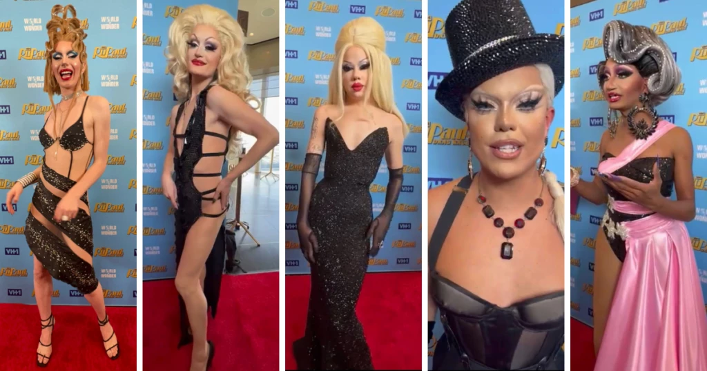 Los finalistas y los looks de las fotos que se llevaron las miradas de la noche son: Angeria Paris VanMichaels, Bosco, Daya Betty, Lady Camden y Willow Pill. También estuvo como invitada la última ganadora del certamen número 13, la artista Symone como anfitriona de la Alfombra Roja.