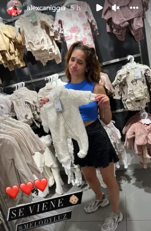También se mostraron en un local de ropa para bebés. Allí se la puede ver a Melody con un enterito blanco y cara de ternura. "El Emperador" escribió "Se viene" y agregó un emoji de un bebé.