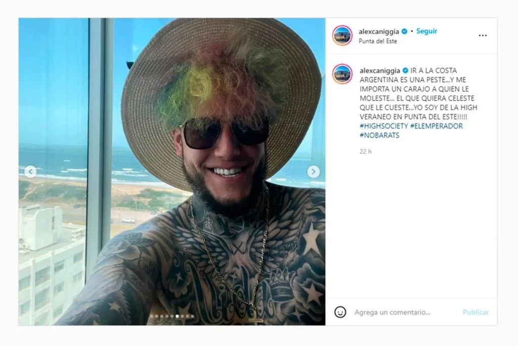 En medio de sus publicaciones habituales, el mediático realizó un descargo en contra del turismo nacional. “Ir a la Costa Argentina es una peste... y me importa un carajo a quién le moleste”, escribió Alex en su cuenta oficial de Instagram.