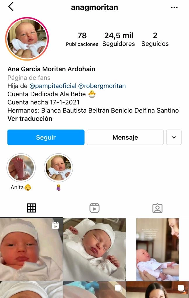 Una de ellas es @Anagmoritan, que ya posee 24,5 mil seguidores y que abrieron el 17 de enero pasado. Allí recopilan imágenes de la hermana de Benicio, Beltrán y Bautista Vicuña desde los últimos meses de embarazo de Carolina. Además, dedicaron varios posteos a las postales más icónicas de Ana en la suite del Otamendi.