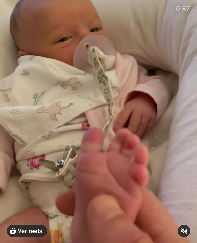 Mientras la pequeña descansaba recostada y resguardada en una wawa de lactancia, vestida con un outfit floral, una bata rosada y un babero con dragoncitos, el empresario gastronómico practicó movimientos del estilo de reflexología que ayudan a conciliar el sueño.