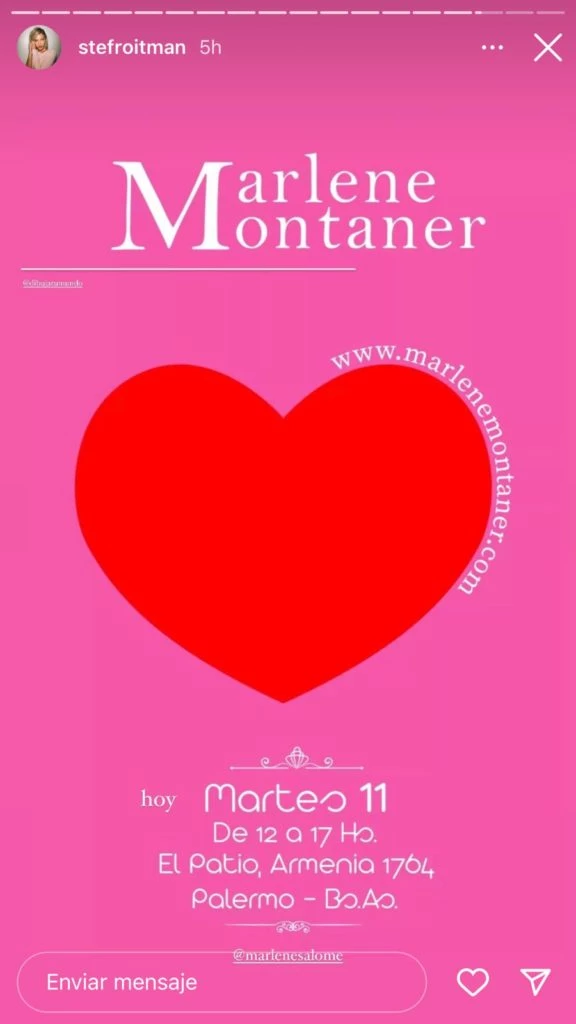 "En la relación entre Marlene y Stef Roitman hay un poco de tensión. No se estarían llevando del todo bien", comienza diciendo @canti.ok, y luego añade: "En la boda Stefi dijo la siguiente frase: '¿hasta acá me tengo que bancar este tipo de cosas? ¿hasta en mi propia boda?", concluye la instagramer. Sin embargo, en las últimas horas, la propia Stefi posteó una historia en su cuenta de Instagram publicitando el emprendimiento de Marlene que presentaría en Buenos Aires este mismo martes.