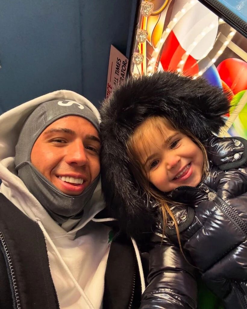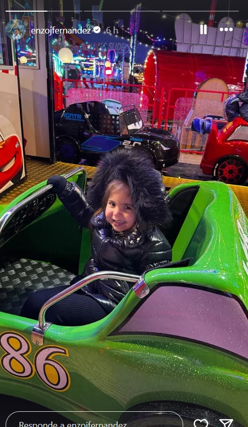 El futbolista de la Selección Argentina de Fútbol también compartió postales de una salida nocturna que hizo con su hija mayor a un parque de atracciones en el centro de la ciudad londinense. En esas instantándeas, Enzo mostró a Oli comiendo una enorme paleta y copos de nieve.