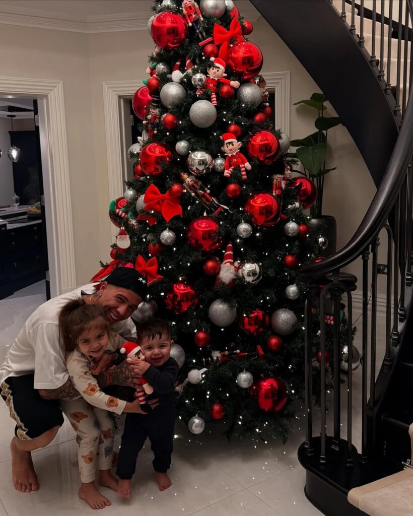 Entre otras imágenes que Enzo Fernández subió a sus redes sociales para celebrar la llegada del Año Nuevo, se lo puede ver a él jugando con sus hijos frente al inmenso árbol de Navidad de su casa de Londres.