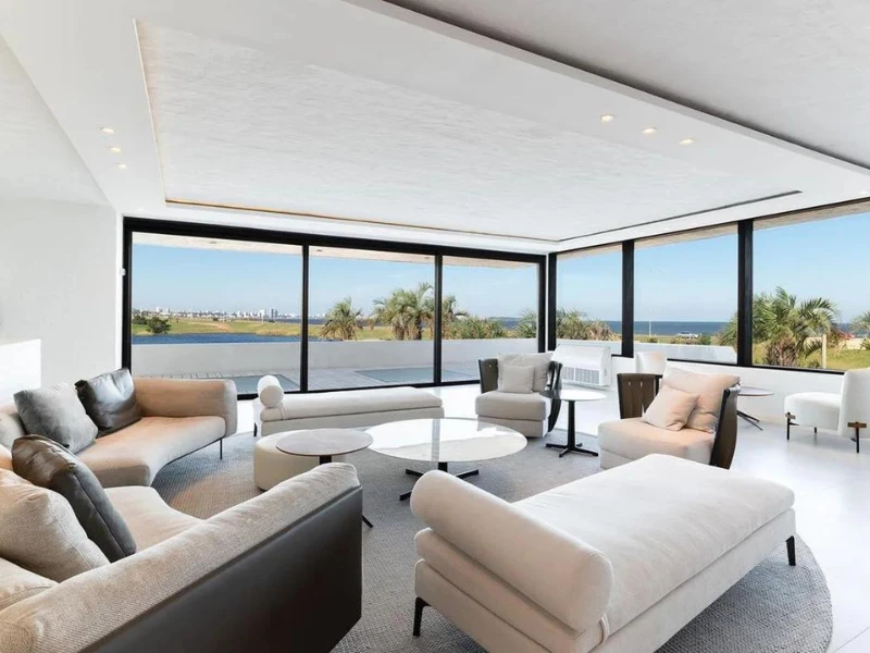 La modelo escogió un lujosísimo complejo con vista al mar, Poseidón Laguna, que fue construido por el arquitecto Samuel Flores Flores, entre 1978 y 1979. Con una estructura arquitectónica en forma de flor es una de las edificiaciones más icónicas de Punta del Este. Con el paso del tiempo, se construyeron tres torres que se integraron a su arquitectura sin perder la escencia.