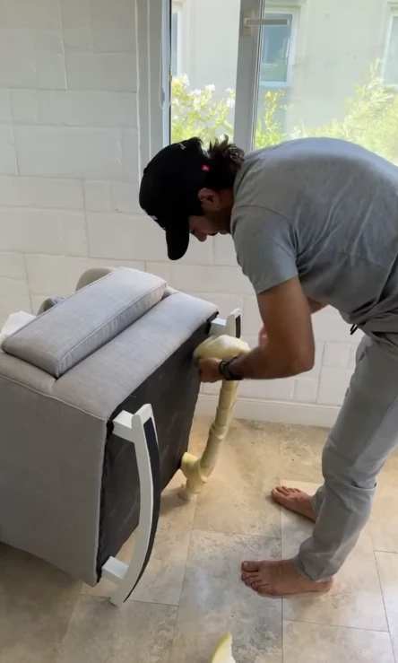 Los muebles les llegaron embalados y, en el video, se ve a Urcera desenrollando los paquetes. Uno muy interesante es un sillón mecedor de tonos blancos y grises, una alternativa ideal para poder amamantar y dormir al bebé.