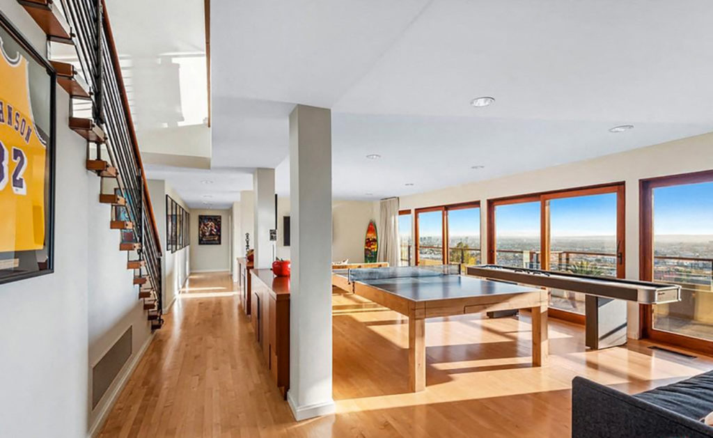 Otro de los highlights de la propiedad californiana con cinco baños es la sala de juegos. No solo cuenta con mesa de ping pong. El estilo lúdico del ex Highschool Musical queda registrado en la máquina de estilo flipper, con juego de pinball, que corona uno de los livings.