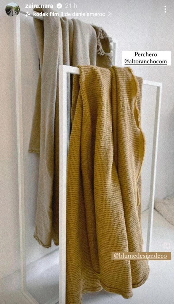 Zaira optó por ubicar un perfechero de hierro blanco para colgar las mantas que utiliza tanto para abrigarse como para dar un toque deco.