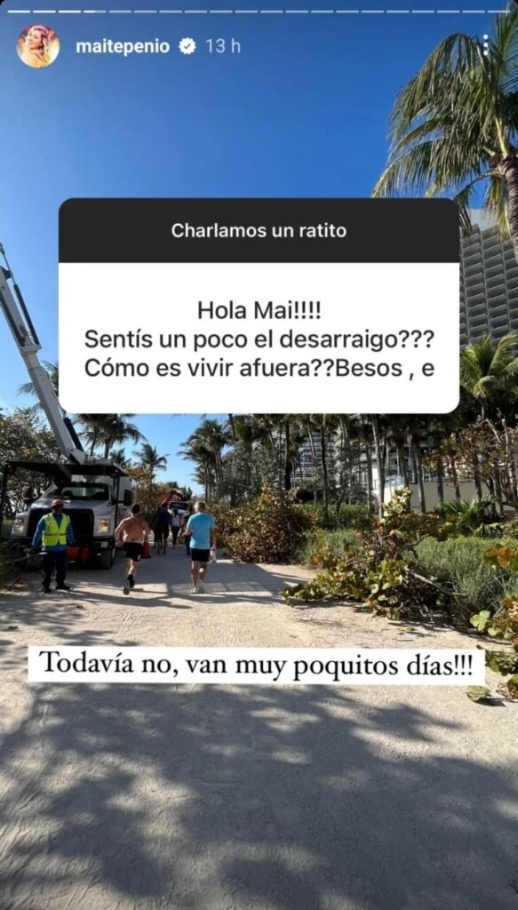 Por otra parte, otro seguidor le consultó: “¿Cómo se están sintiendo? ¿Todavía se sienten como vacaciones o ya se está adaptando?”. Acto seguido, Maite escribió: “Ya nos estamos adaptando. Lunes ya empezamos con trámites y reuniones. De a poco, obvio. Pero no queríamos quedarnos en el mood playa sino activar rápido”.