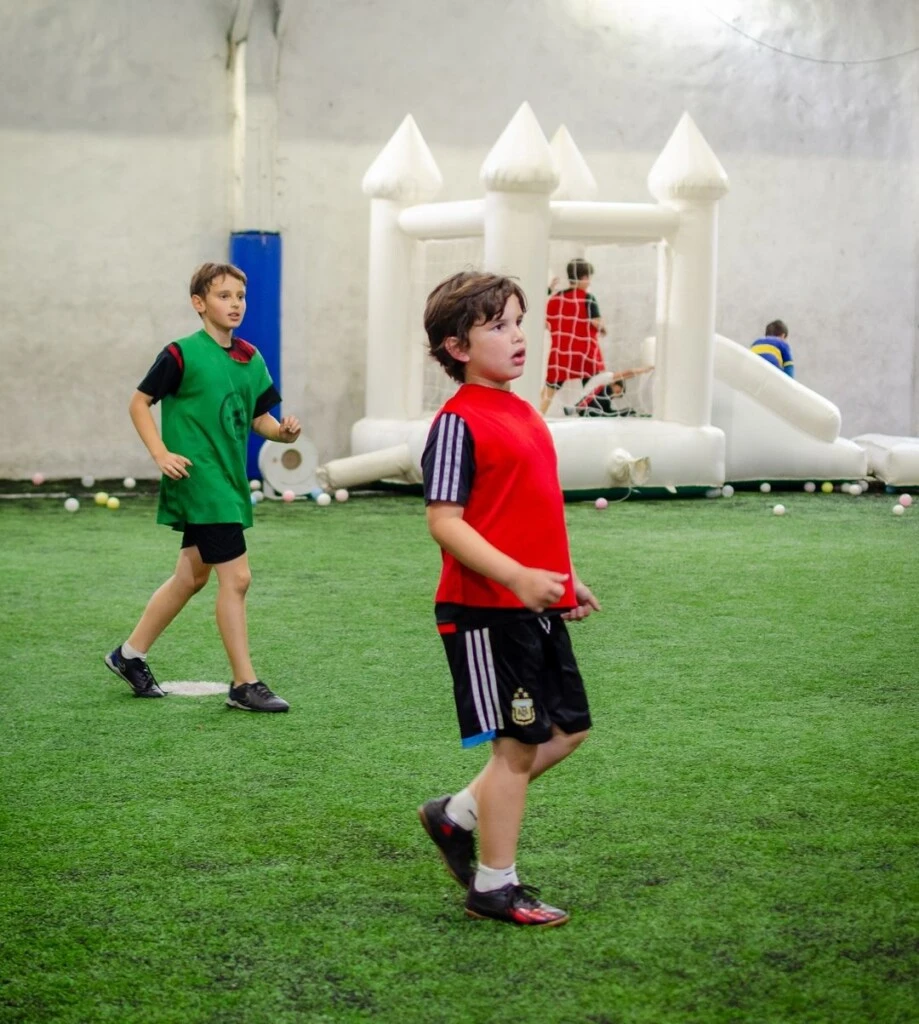 El atractivo principal de la fiesta fue la cancha de fútbol, donde tanto el cumpleañero como todos sus amigos invitados disfrutaron hasta el cansancio. Allí el lugar dispuso de pecheras verdes y rojas para definir los dos equipos.