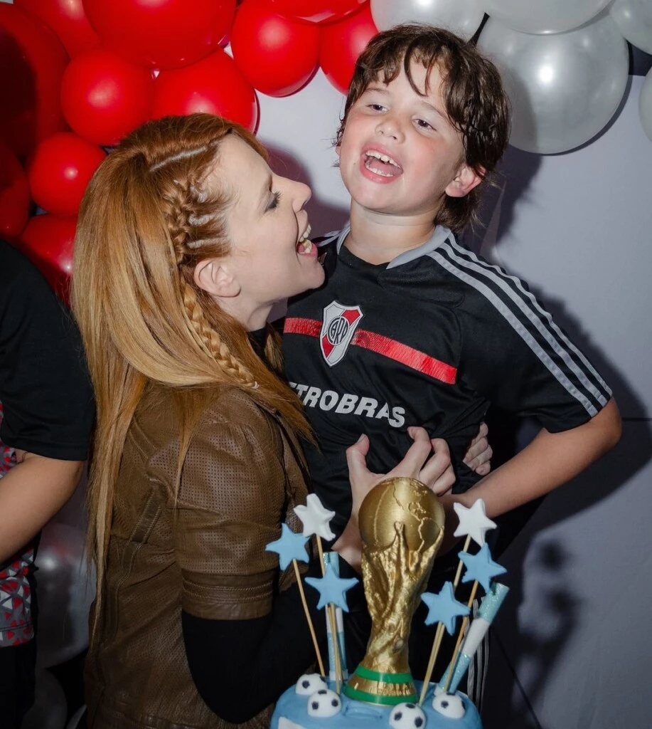 Agustina Kampfer compartió en sus redes este miércoles cómo fue el festejo de cumpleaños de su hijo, Juan, que cumplió siete años rodeado de amigos y amigas. La temática fue puramente futbolera, con la decoración del club del cual el pequeño es fan, River Plate.