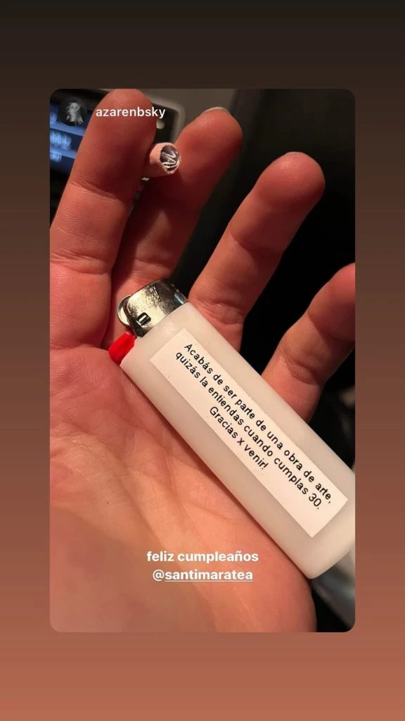 Por último antes de irse a dormir explicó que aunque no estuvo en el festejo principal se reunió con algunos amigos a unas pocas cuadras del lugar, "Yo estaba a 3 cuadras en un lugarcito dentro del mismo polo cultural. Tenía que estar ahí por si pasa algo y por todo lo organizativo. Estaba ahí con mis amigos que sabían y me ayudaron a organizar, en plan aguantadero. O sea estabamos ahí aguantando mientras sucedía la fiesta en la que no iba estar, pusimos música, tomamos algo y se armó una mini fiestita"