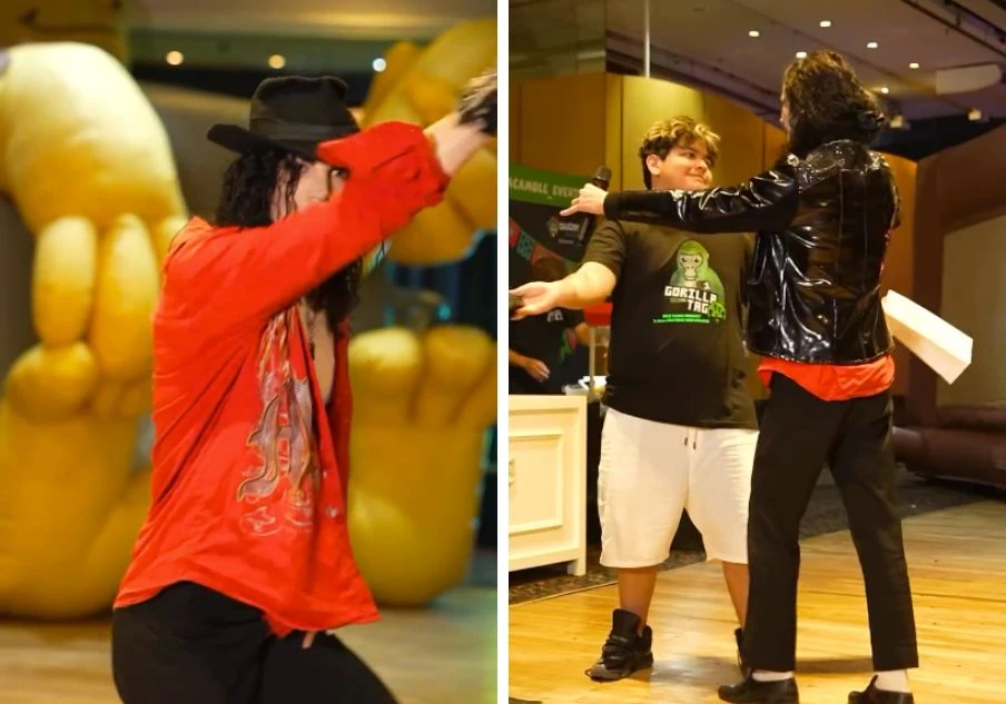 El entretenimiento fue uno de los puntos más fuertes de la celebración. La fiesta contó con la presencia de Leo Blanco, el reconocido imitador de Michael Jackson, quien brindó un show en vivo interpretando los hits más legendarios del Rey del Pop. La actuación de Blanco no solo fue un homenaje musical, sino una coreografía de la que participaron activamente los invitados, generando un clima de alegría y baile.
