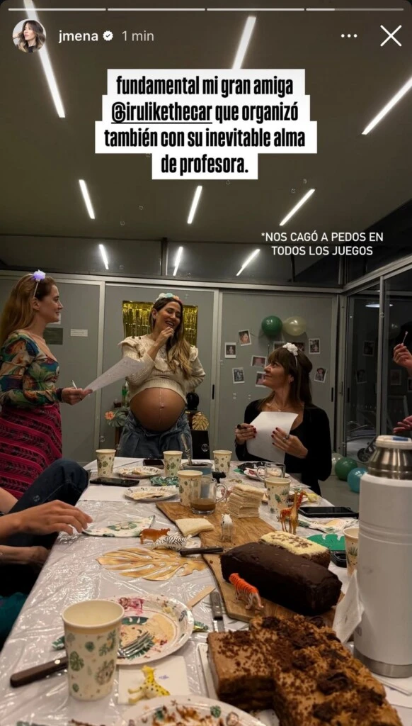 Según contó la artista, durante el Baby Shower realizaron varios juegos, organizados por sus amigas Bárbara e Irene Ferrari. "Fundamental mi amiga Irene que organizó también con su inevitable alma de profesora", compartió y aclaró divertida: "Nos cagó a pedos en todos los juegos".