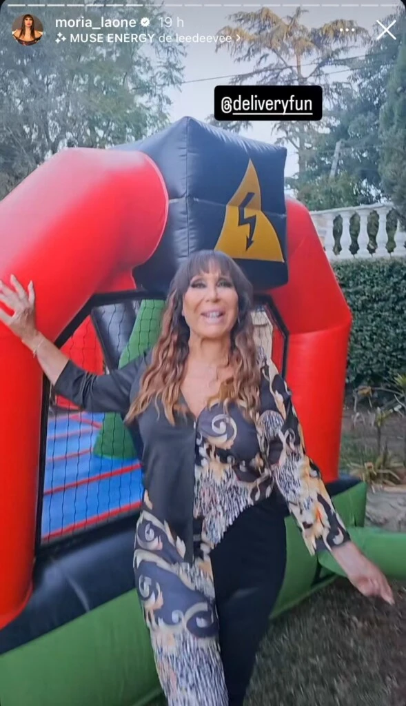 Fiel a su estilo, Moria Casán mostró el gran atractivo del festejo al aire libre: "Este inflable tiene el tamaño de la casa. Los pibes divirtiéndose a full... Tengo ganas de meterme yo, pero no, sería too much".