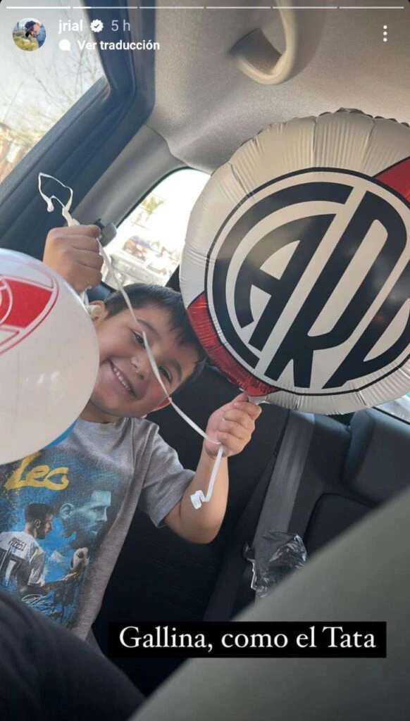 El comunicador quien en retiradas ocasiones ha mostrado su amor por su nieto y se ha quejado por no poder verlo en medio del fuerte conflicto con su hija, este miércoles compartió una foto del pequeño, en donde aparece en la parte trasera de un auto con un globo de River Plate, el club del que es fanático Rial, por lo que presumió: "Gallina, como el tata".