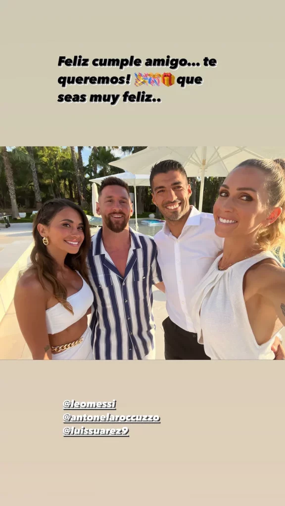 Si bien Antonela Roccuzzo ya le había dedicado un mensaje a través de las redes, la rosarina compartió algunas imágenes de los tragos con los que brindaron en el íntimo festejo y recibió unos cuantos saludos más: “Feliz cumple amigo, te queremos. Que seas muy feliz”, le escribió Balbi. “Feliz cumpleaños Leo Messi. Te deseamos la luna y las estrellas con tu hermosa familia. Por los siglos de los siglos juntos”, firmó Semaan. “Feliz cumple Chaval”, le escribió su amigo Fábregas.