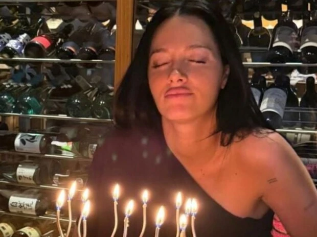 La escena tuvo además una atmósfera especialmente cálida: una cava repleta de botellas de vino como fondo, luz tenue, velas encendidas y una imagen que capturó uno de los momentos más especiales de la noche, cuando Oriana, con los ojos cerrados, se preparaba para pedir su deseo.