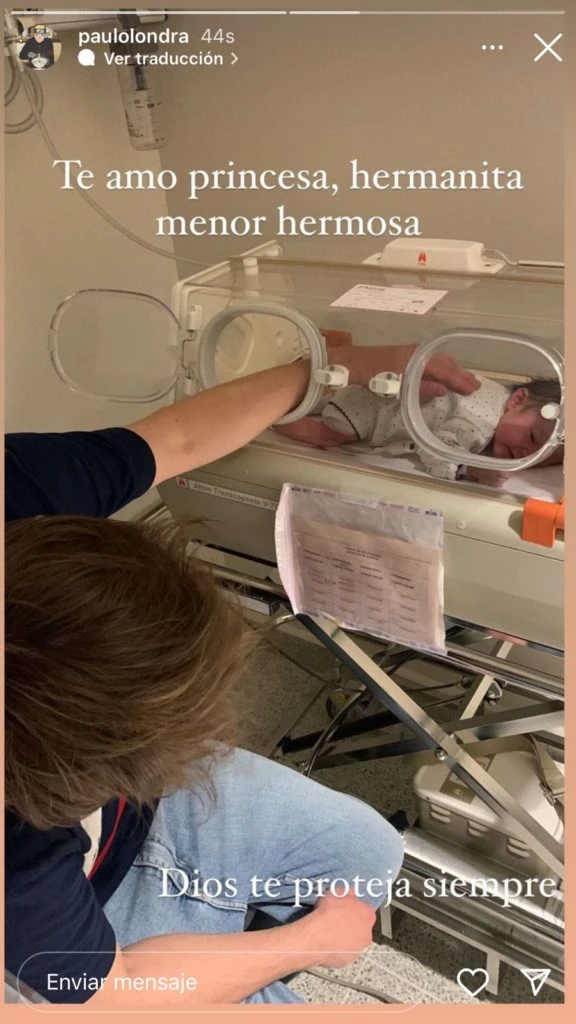 A los pocos minutos Paulo Londra decidió compartir una fotografía conociendo a su hija recién nacida. "Te amo princesa, hermanita menor hermosa. Dios te proteja siempre", escribió el rapero quien vio por primera vez a su hija que debió estar algunas horas en incubadora.