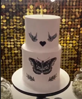 La torta fue de dos pisos con decoraciones en negro con diferentes diseños. La familia se mostró muy feliz ante esta celebración.