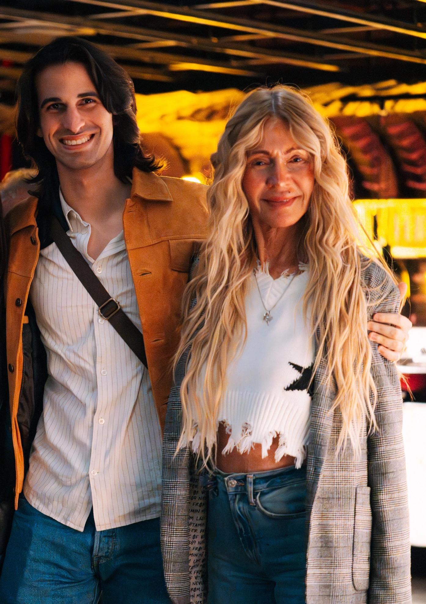 En las imágenes de la salida se los ve posando con naturalidad y cercanía, en un clima de salida “de verdad”, sin rigideces de alfombra roja. El grupo -del que también fue parte la pareja de Franco, Ernestina Ambiela y un amigo- eligió un registro casual urbano que dialoga perfecto con una noche de show: Ernestina eligió un vestido azul de caída fluida combinado con abrigo oscuro, en clave más romántica pero práctica; Franco fue por una combinación con camisa clara a rayas finas y una chaqueta tipo gamuza en tono camel, que aporta textura y un guiño retro; y completa la escena Cris con un mix de jean, top blanco con flecos y tapado a cuadros, con accesorios delicados que terminan de redondear una estética joven y contemporánea. Todo, en un entorno de luces cálidas propio de un gran evento nocturno.