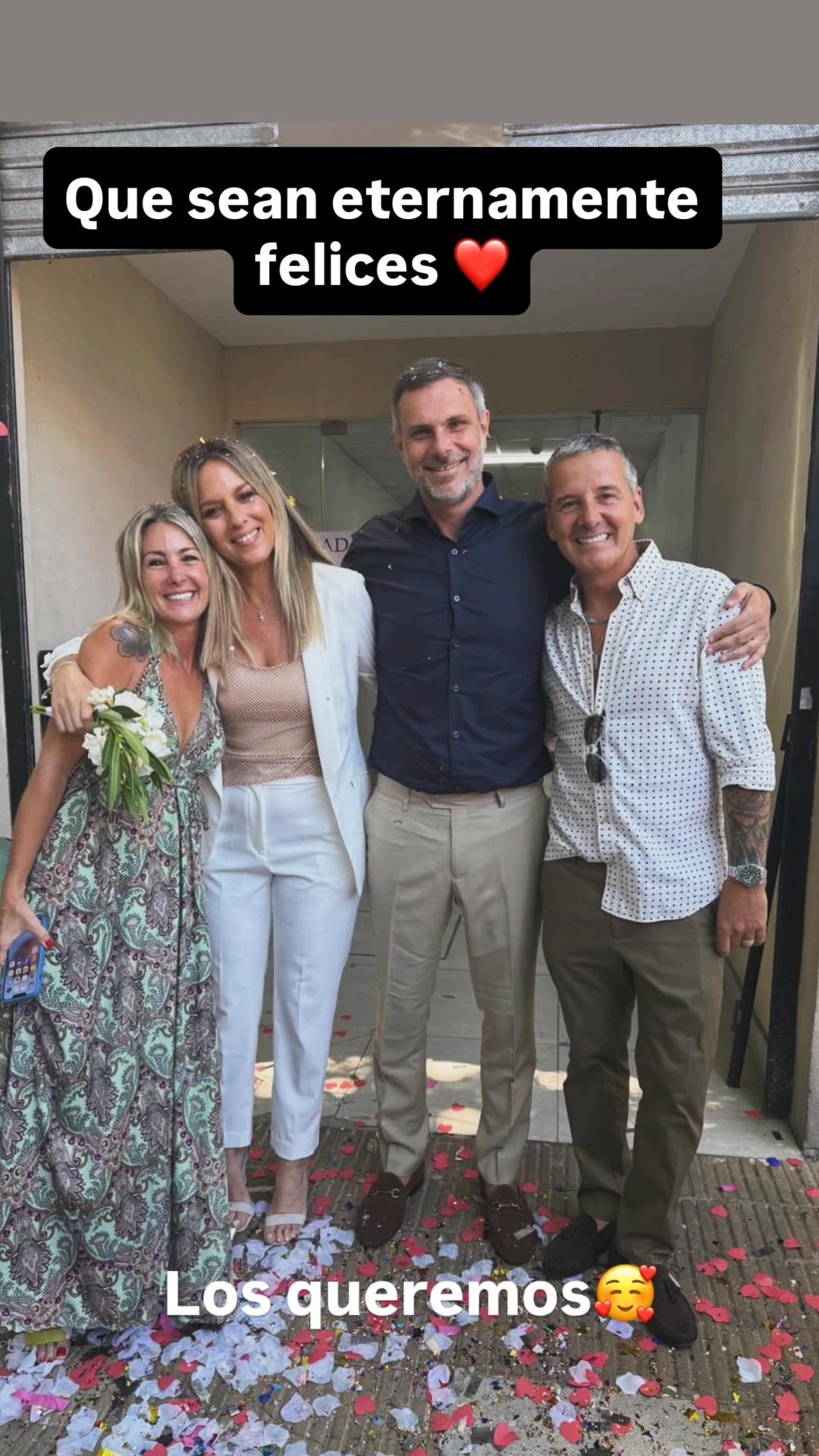 En las imágenes que circularon del civil, puede verse el clima festivo: abrazos, confeti, gestos de cariño y la típica salida del Registro Civil envuelta en aplausos. Amigas cercanas, colegas y familiares posaron junto a la pareja, enmarcando un momento que, aunque sencillo, se cargó de emoción y significado.