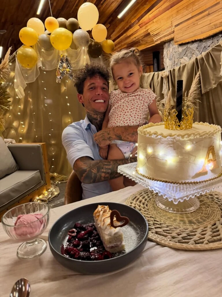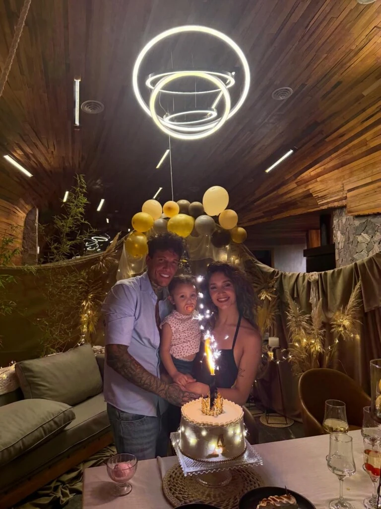 En una imagen enternecedora apareció comiendo pastas mientras sus papás posaban abrazados detrás de ella; en otra, estuvo en brazos de Alex frente a la torta iluminada, con una sonrisa que se robó todas las miradas.
