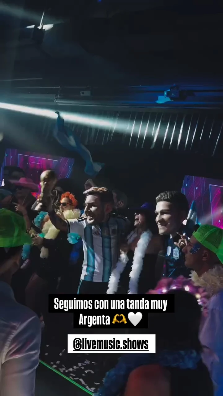 Para sostener el clima de fiesta, hubo DJ, pantallas y efectos lumínicos, además de una estación de glitter para que los invitados se sumaran al look con brillo y maquillaje. Y cuando parecía que ya se había visto todo, llegó el final a pura energía: un “carnaval carioca” con luces LED y temática argentina, con personajes caracterizados como figuras de la Selección —incluidos Lionel Messi y Julián Álvarez— que aparecieron para animar el cotillón.