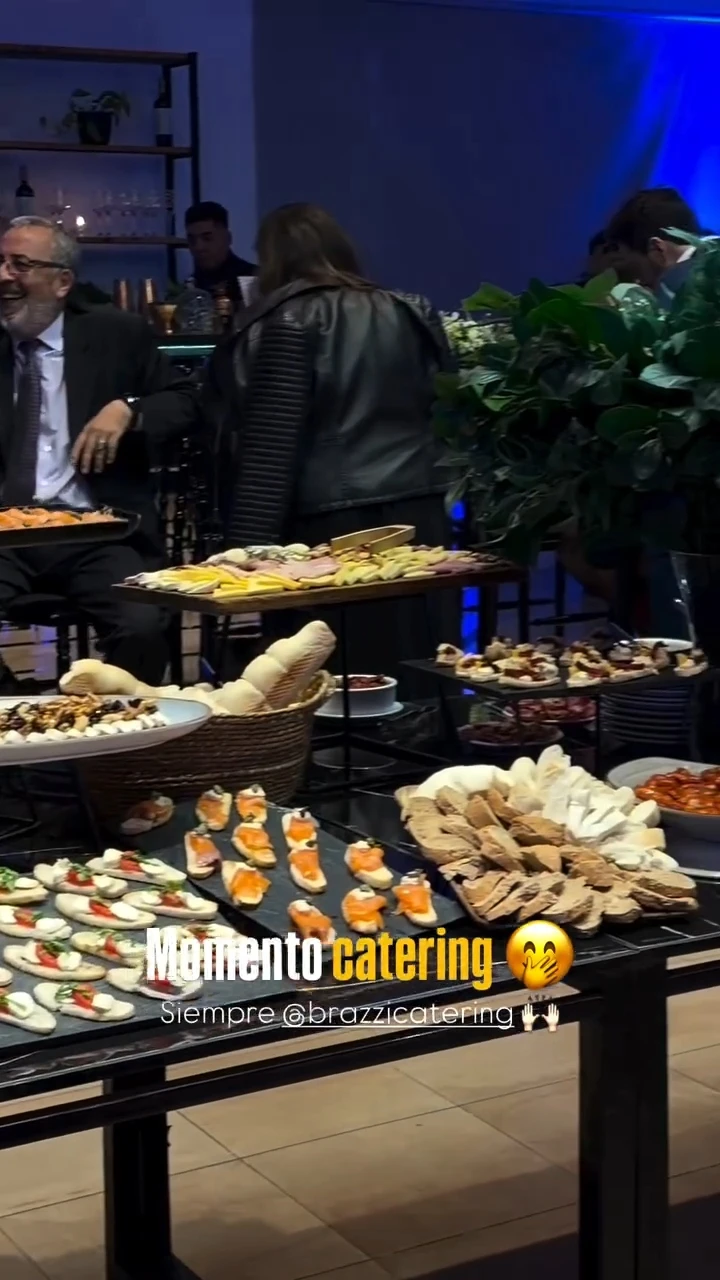 La gastronomía también se corrió del formato rígido de cena sentada: la idea fue un “social catering” con bocados que circularon durante la noche —como bruschettas y brochettes— y una estación de cocina en vivo donde se preparaban platos al momento, sumando show y dinámica. A eso se le agregaron mesas dulces y torta, que se vieron en historias y posteos compartidos por el salón y por quienes estuvieron siguiendo el evento desde redes.