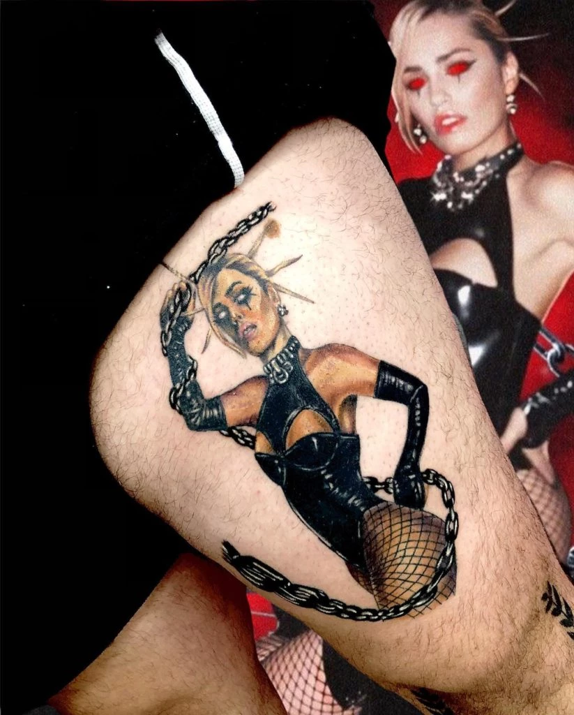 A través de Instagram, Agus Poblet mostró el tatuaje que se hizo de su ídola con el atuendo de Disciplina. A través de su publicación, pidió que se haga viral así llegaba a los ojos de Lali y finalmente cumplió su cometido.