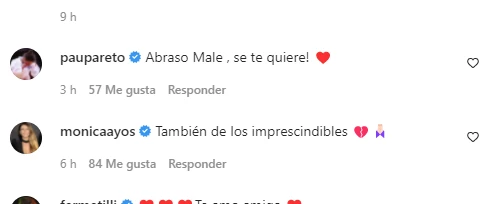 También recibió mensajes de cariño y apoyo de figuras como Nancy Dupláa, Gastón Pauls, Paula Pareto, Topa, y Diego Scott.