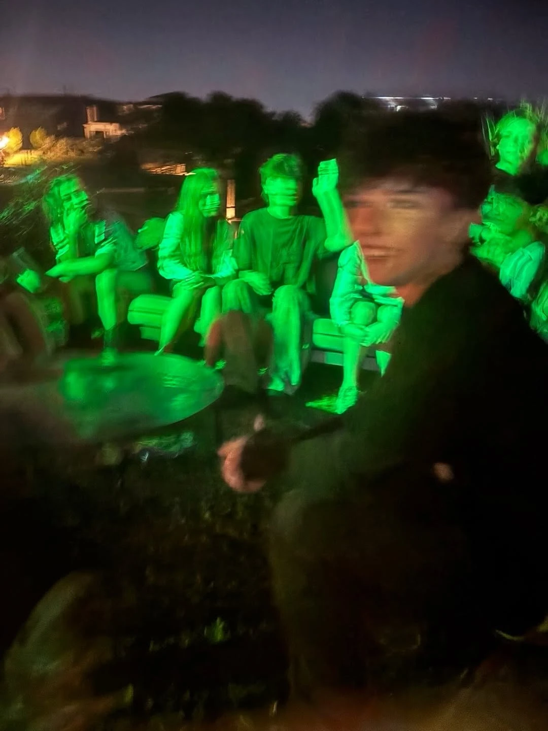 Por último, aparece una foto movida de una juntada con amigos, iluminada por luces verdes y un clima nocturno típicamente adolescente. Risas, charla y distensión: un recordatorio de que, pese a estar rodeados de cámaras y conflictos que no eligieron, siguen teniendo espacio para la vida social propia de su edad.