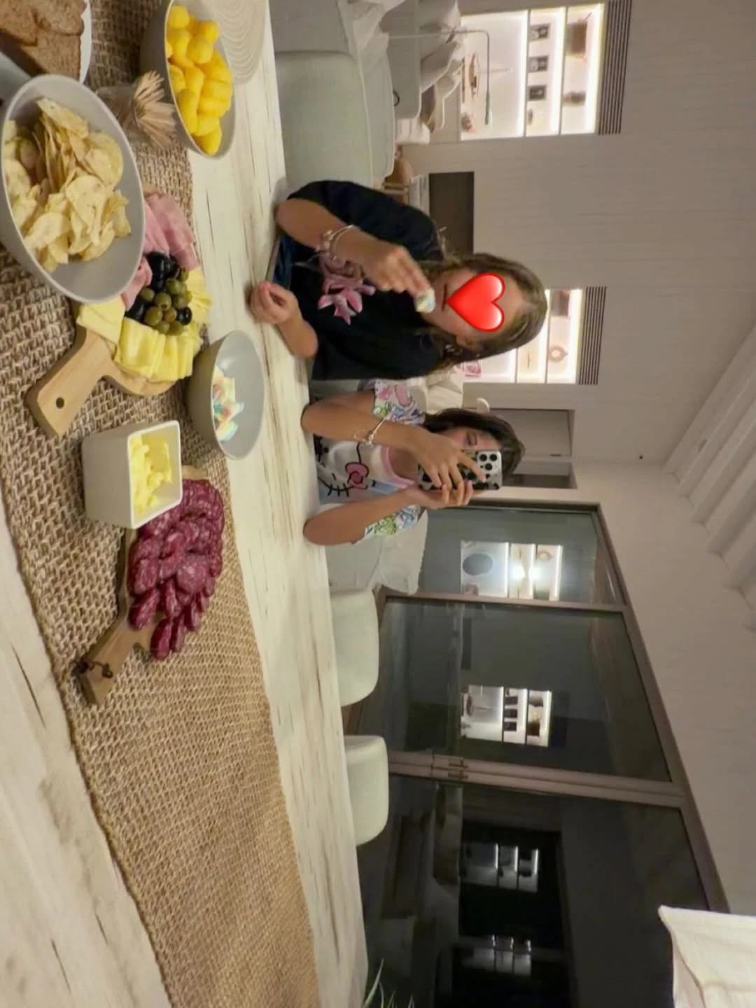 También compartió una escena cotidiana y muy hogareña: una mesa repleta de una picada con quesos, fiambres, frutas y snacks, mientras las hermanas menores, Francesca e Isabella, comen y conversan en un ambiente relajado. El detalle invita a pensar en una noche tranquila, lejos del ruido exterior, mostrando cómo los momentos simples siguen siendo un refugio en medio del caos mediático.