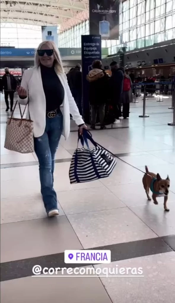 La mujer se mostró super feliz de ir a cubrir al 100% su rol de abuela y poder estar a solas con los más chicos de la familia. Nora llegó radiante a Francia junto a su gran compañía: su perra Jana.