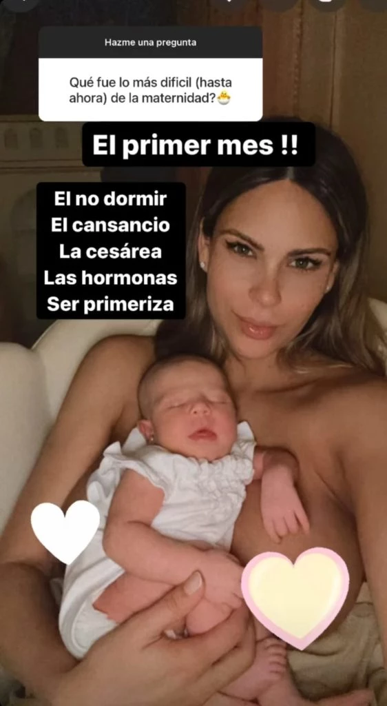 Todo surgió a partir de la pregunta de una seguidora que le consultó: "¿Qué fue lo más difícil que te tocó vivir (hasta ahora) de la maternidad?". A lo que la modelo respondió: "El primer mes. El no poder dormir, el cansancio, la cesárea, las hormonas y ser primeriza". Además, sumó algunas fotos de ella junto a su bebé a altas horas de la noche intentando conciliar el sueño después de amamantarla.
