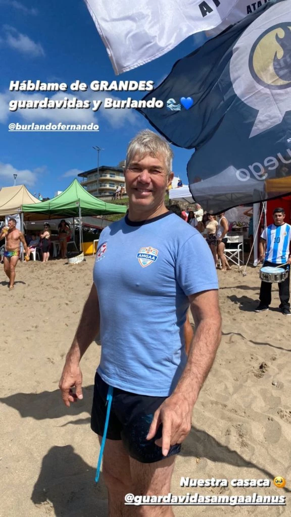 Este fin de semana el abogado de los famosos participó de una competencia de rescate de guardavidas. El evento se realizó en la playa Puerto Cardiel (Florisbelo Acosta y la costa) y tuvo a Burlando integrando un equipo mixto en el marco de la 9na Copa de Miguel Nardone, destinada a personas mayores de 40 años.