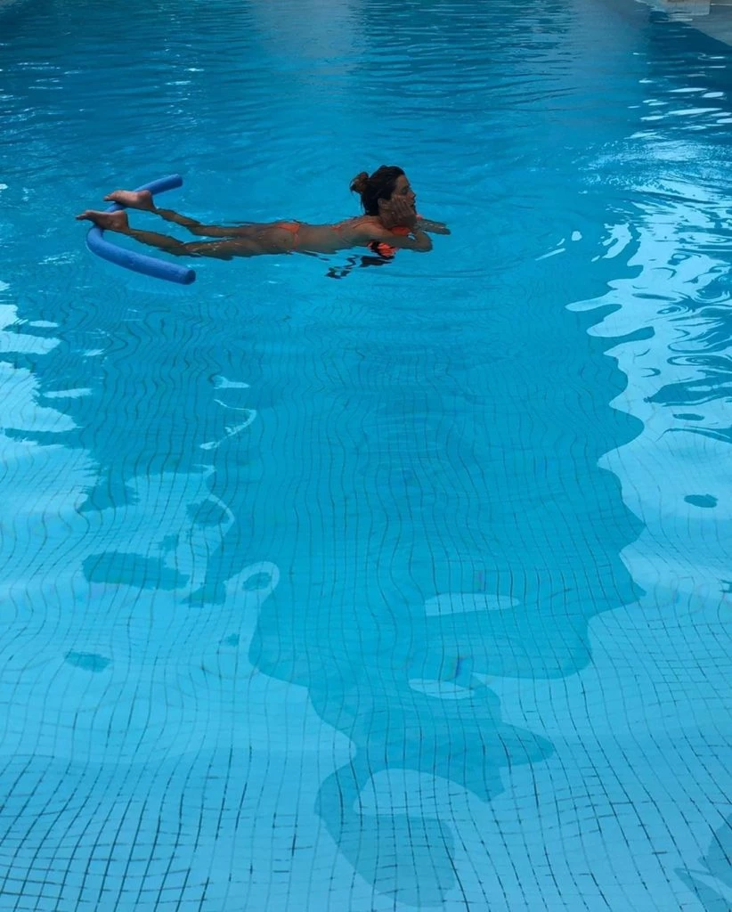 "Cuando me preguntan como estoy? Yo respondo aquí estoy pariéndome. #Enladulceespera", escribió al pie del posteo que tituló: "Sabemos parir y bebés saben nacer". En la publicación de Instagram se la puede ver practicando algunos de los ejercicios de preparación de parto, colgando la ropita que usará su hijo y nadando para relajar su cuerpo.