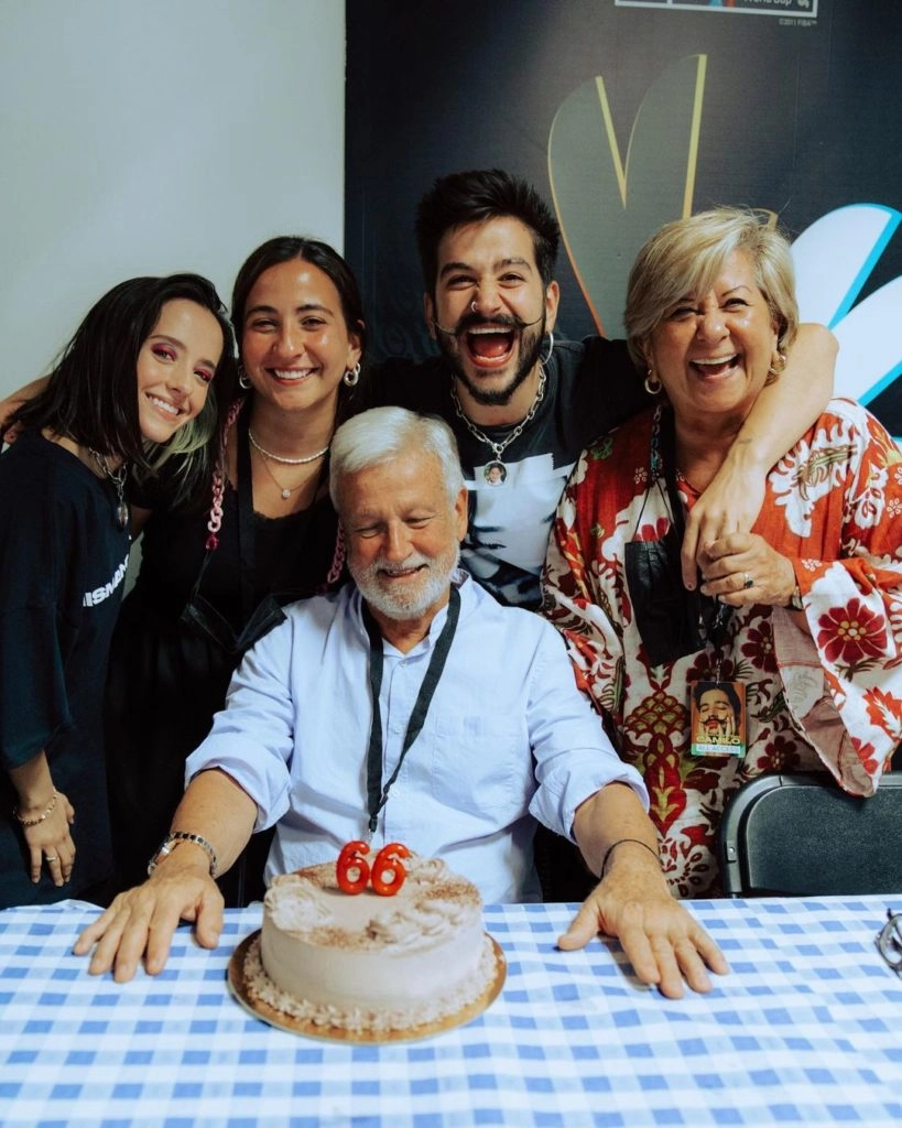 En dicha fotografía se lo ve a Camilo feliz posando con sus seres queridos y celebrando el cumple de su padre en pleno tour. "Quiero ser como tú. Me inspiras con todo lo que haces pa, con cada beso que le das a la mamá, con cada consejo, ¡¡con cada carcajada!! ¡¡Estás en el mejor momento de tu vida y amo que puedas disfrutar todo lo que Dios nos está permitiendo vivir!! Te veía ayer cantando en el público, y no podía creer que todo esto nos esté pasando", escribió el marido de Evaluna.