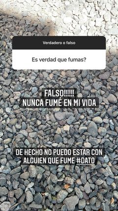 "Fumás". "Falso. Nunca fumé en la vida. De hecho, no puedo estar con alguien que fume #dato", declaró Cande Molfese.
