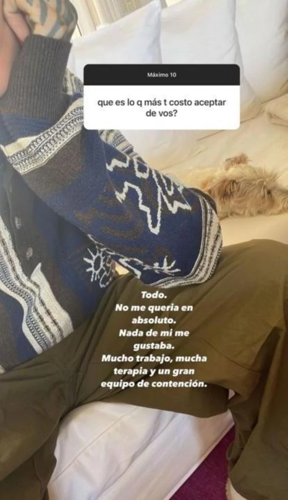 En ese contexto, se metió en un tema delicado y volvió a hablar de los problemas alimenticios que afrontó en su adolescencia y de su lucha para estar mejor. “¿Qué es lo que más te costó aceptar de vos?”, le preguntaron y ella respondió: “Todo. No me quería en absoluto. Nada de mi me gustaba”, y agregó cómo hizo para salir de ese posición: “Mucho trabajo, mucha terapia y un gran equipo de contención”.